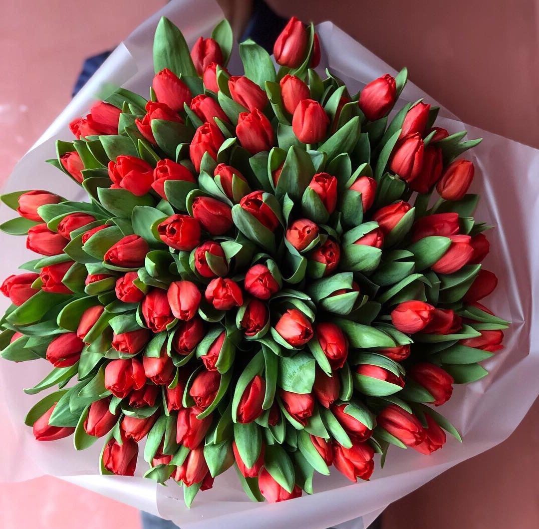 Сто один бутон образует плотную красную сферу с безупречной геометрией. Кенийская роза отличается густотой лепестков и насыщенным оттенком который не теряет глубину даже при ярком свете. Букет держит форму и впечатляет масштабом.