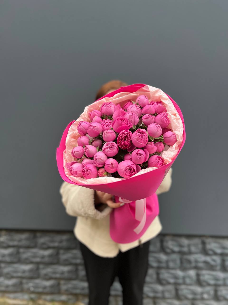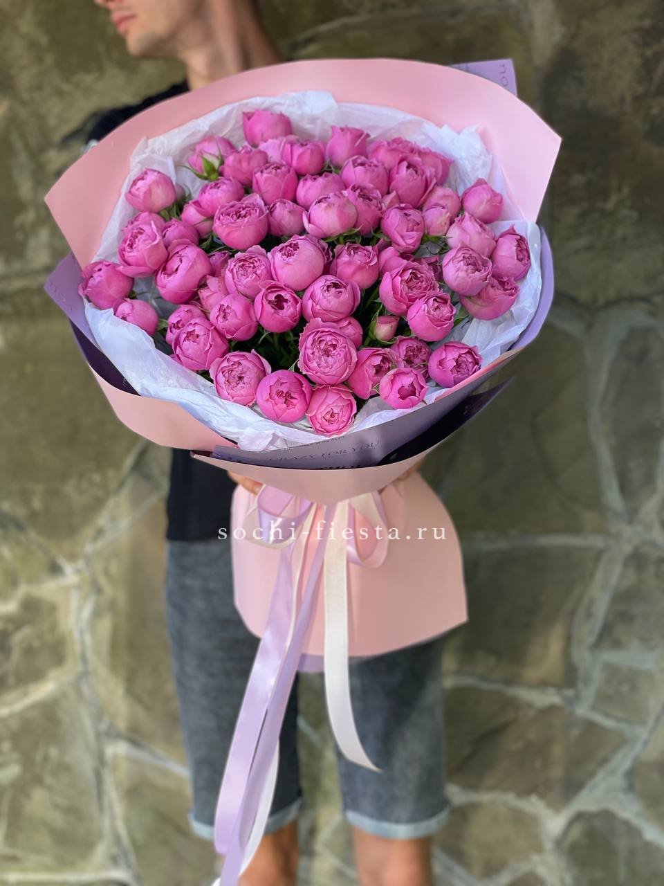51 пионовидная кустовых роза Мисти Баблс и бомбастик.