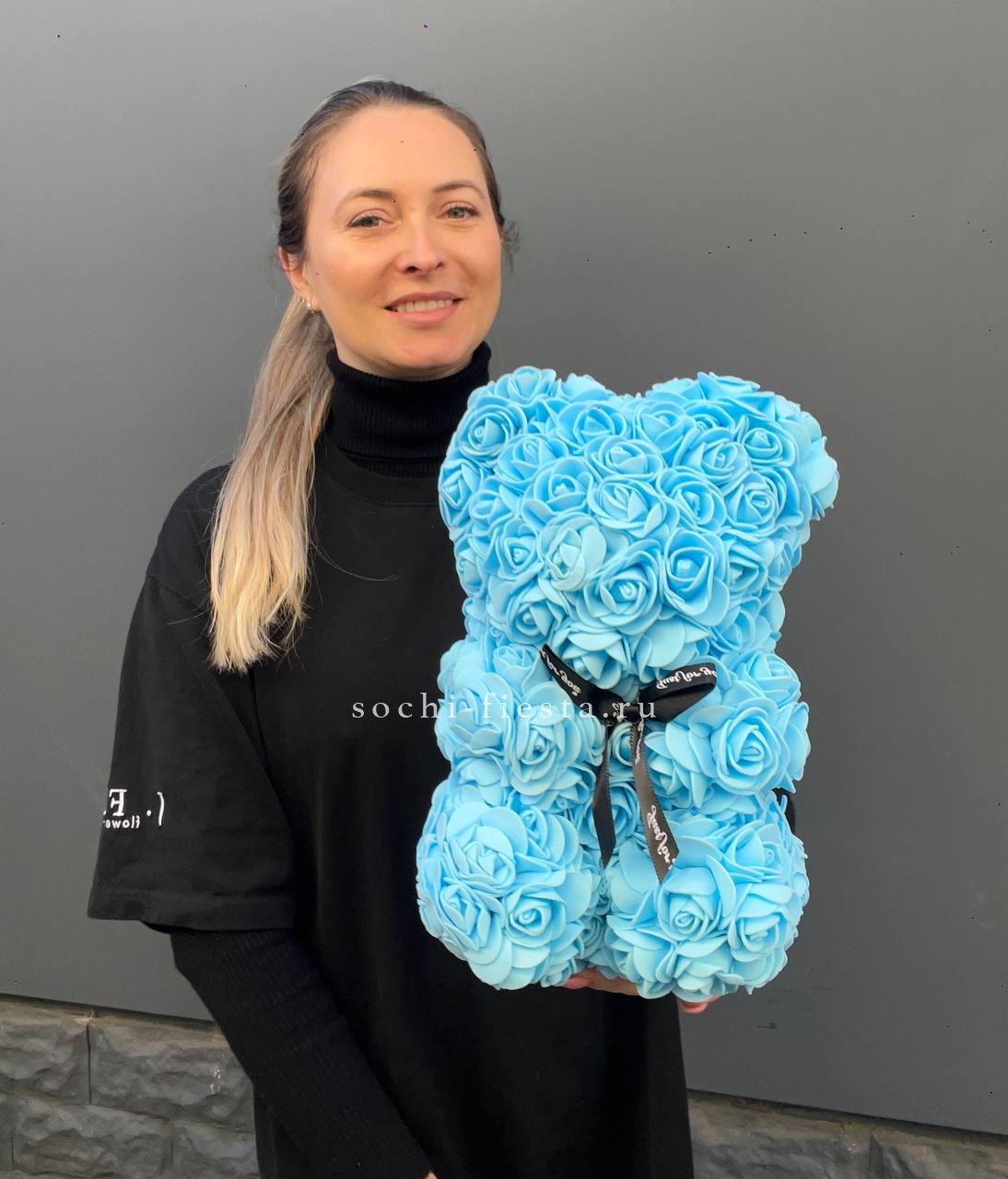 Медведь из фоамирана выглядит воздушным благодаря особой текстуре материала. Голубой цвет придает фигурке свежесть, а аккуратные пропорции делают её милым дополнением к любому подарку.