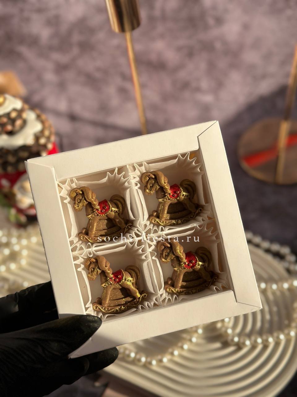бельгийский шоколад. Кони- 4шт. Ручная роспись.