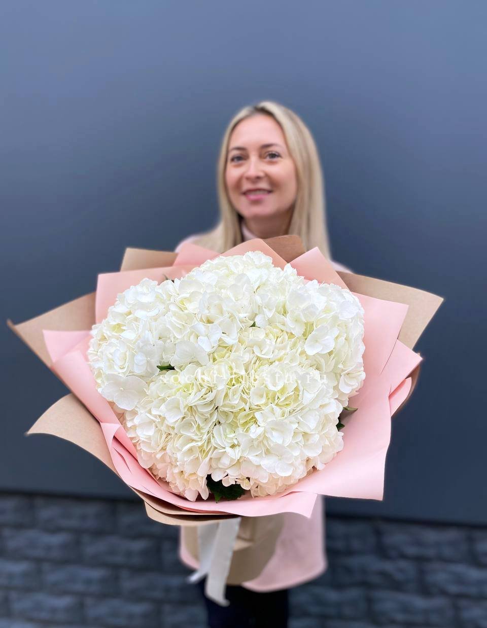голубая гортензия, маттиола или замена в голубом оформлении.