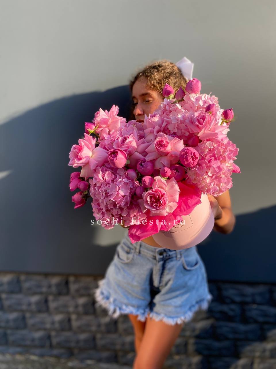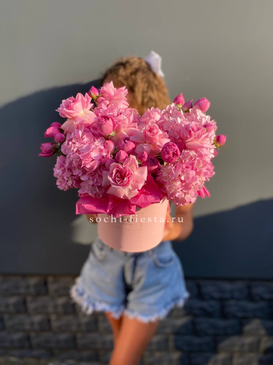 мисти баблс, гортензия, розовая роза, коробка размер 16D.