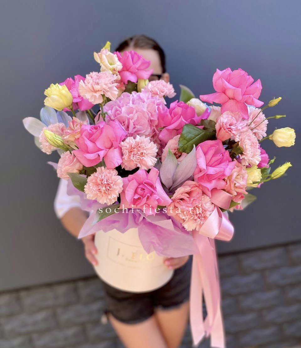 Радужные гипсофилы в шляпной коробке