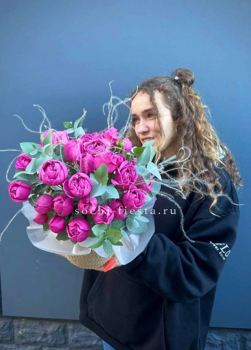 Для заказа товара "Пионовидные розы в джутовом кашпо " с доставкой в Шахтах нажмите в корзину