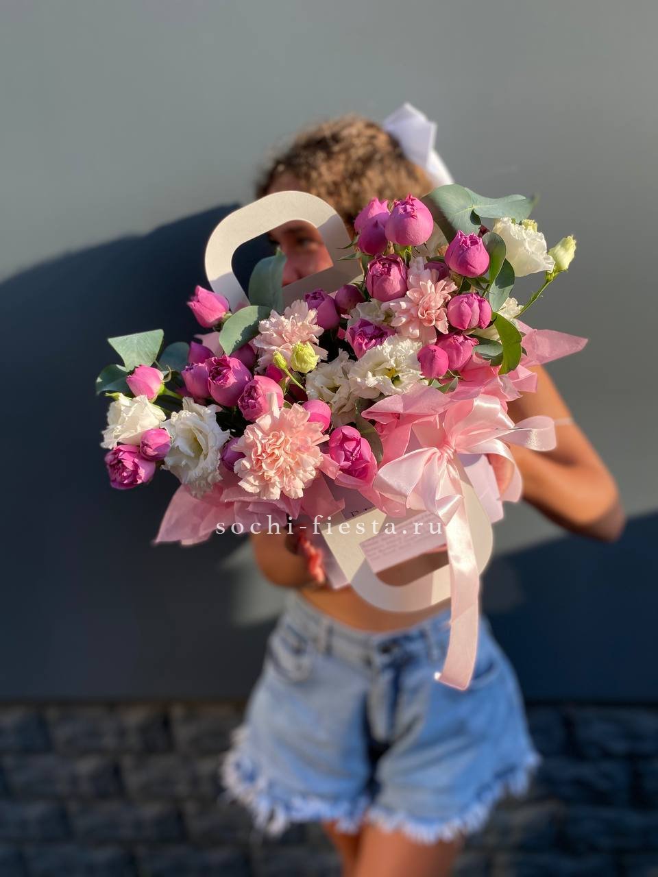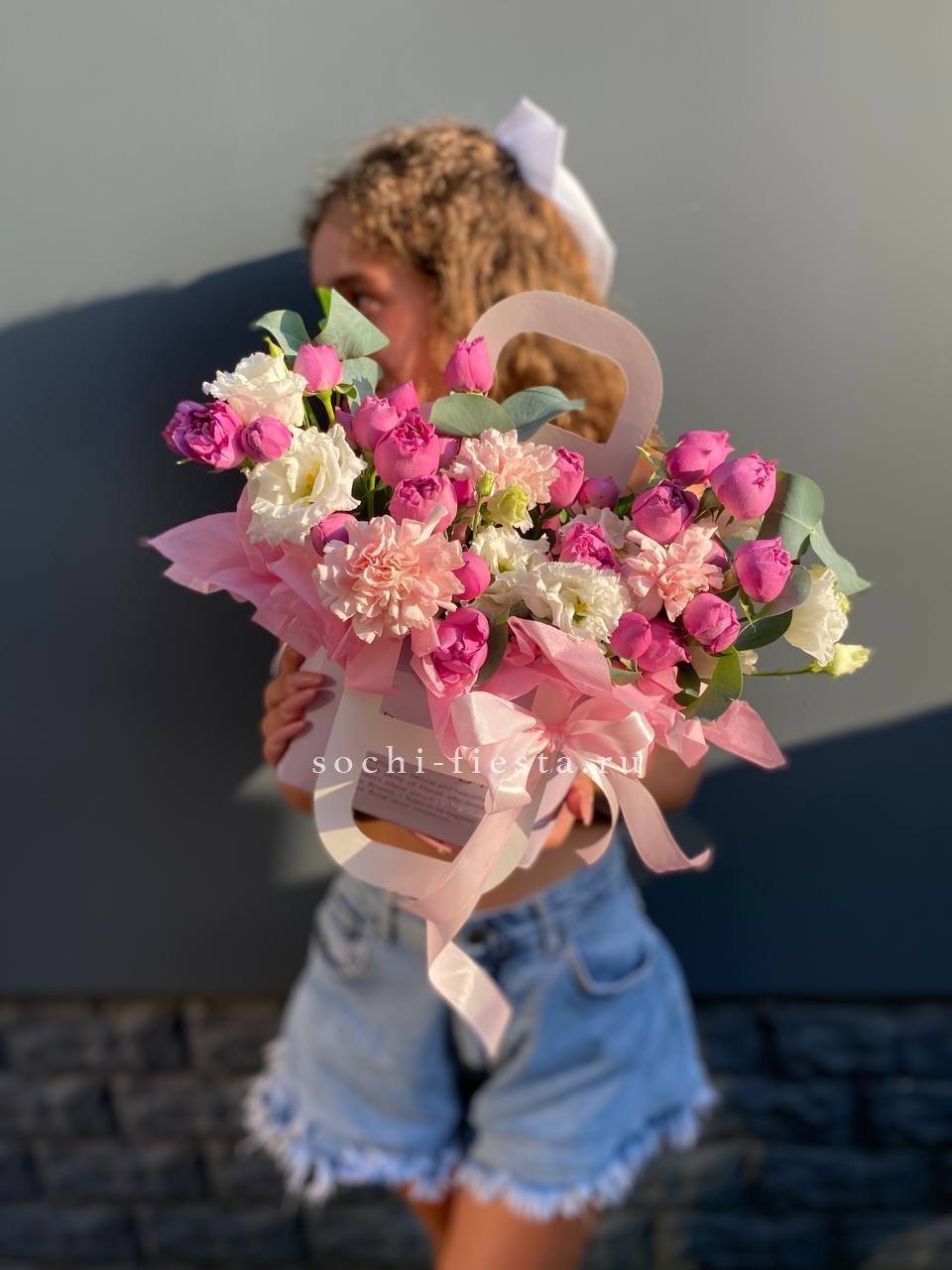 Для заказа товара "Сумочка с кустовой розой и диантусами" с доставкой в Шахтах нажмите в корзину