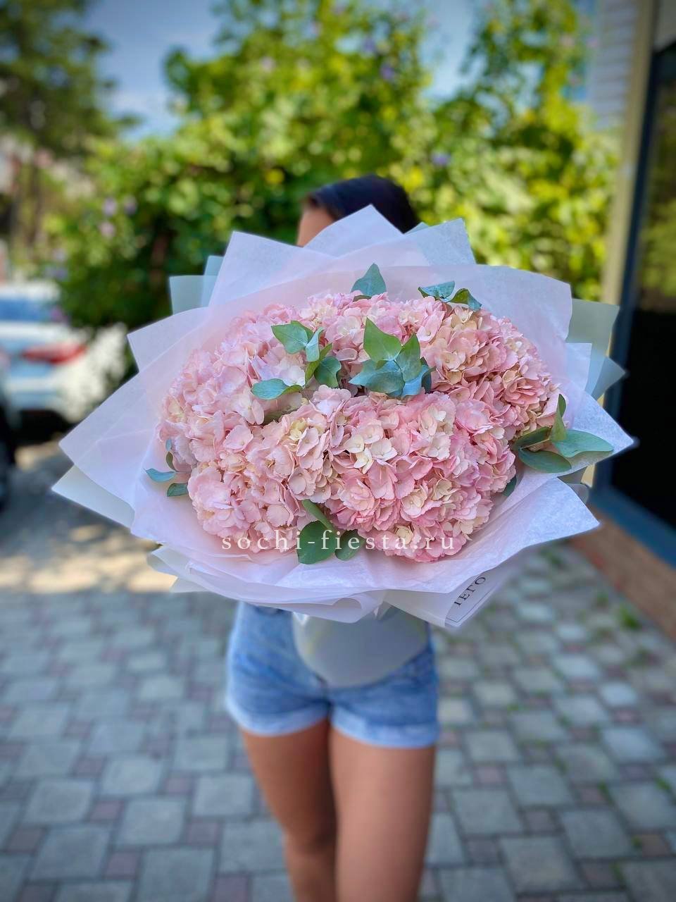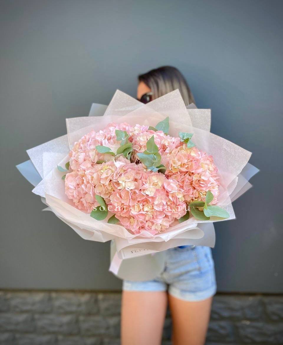 гортензия, лента, дизайнерская упаковка Цвет гортензии на выбор