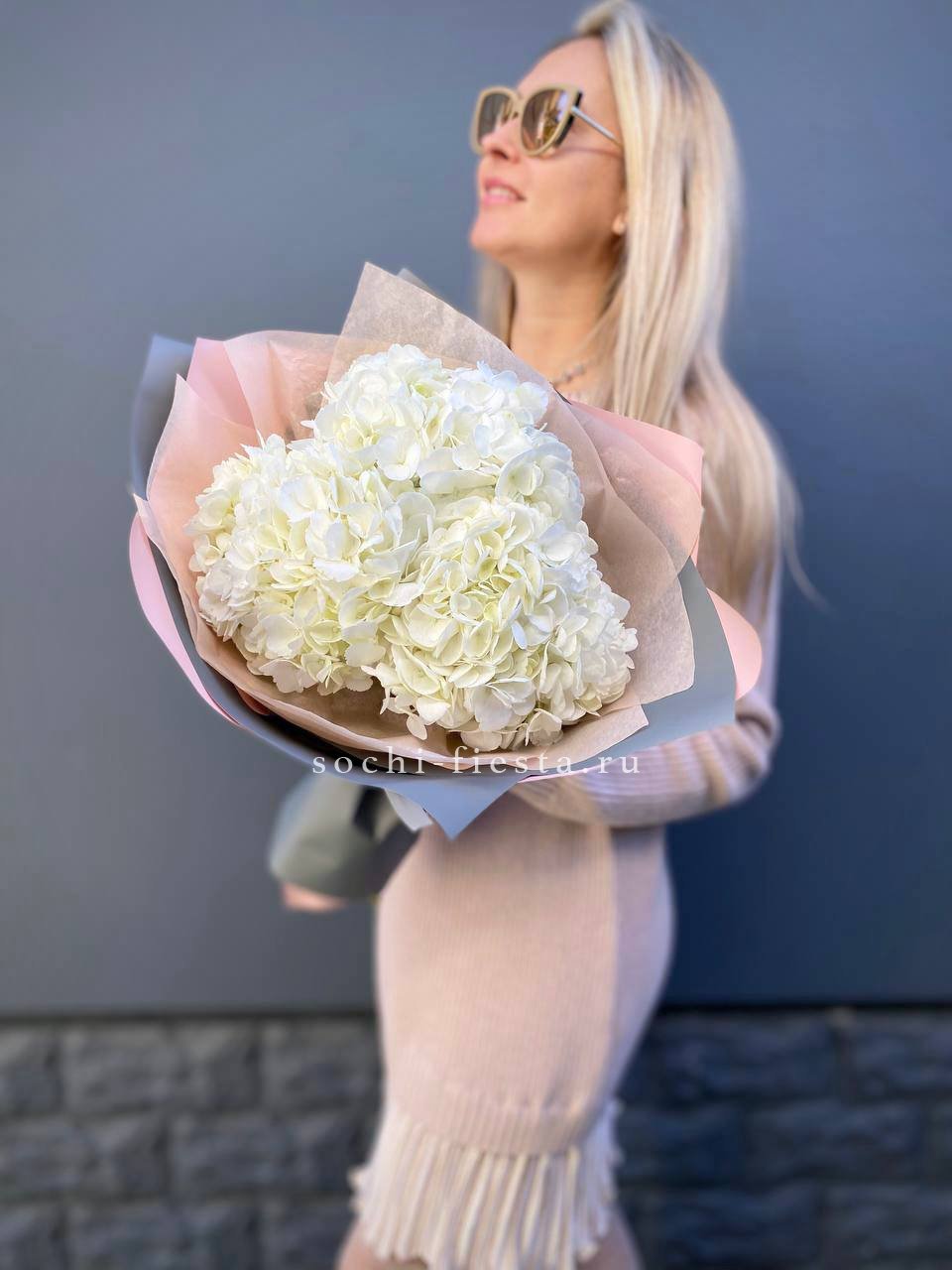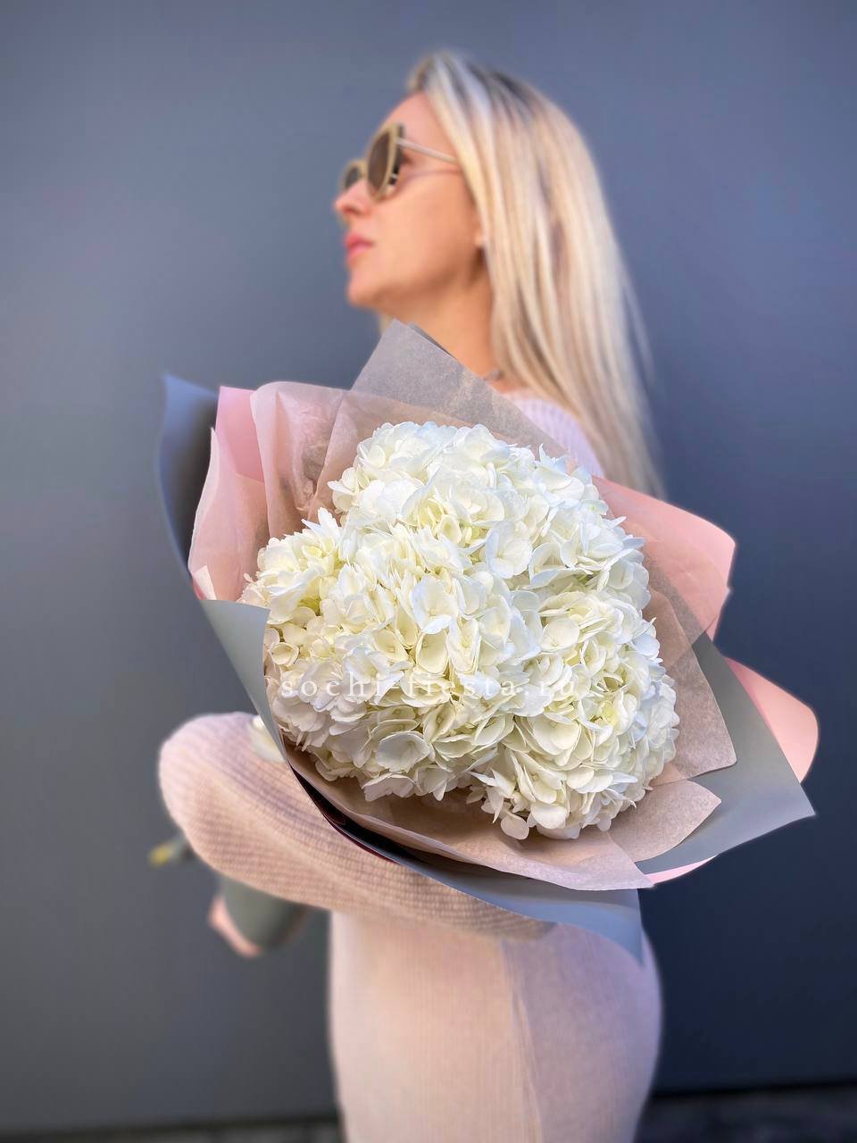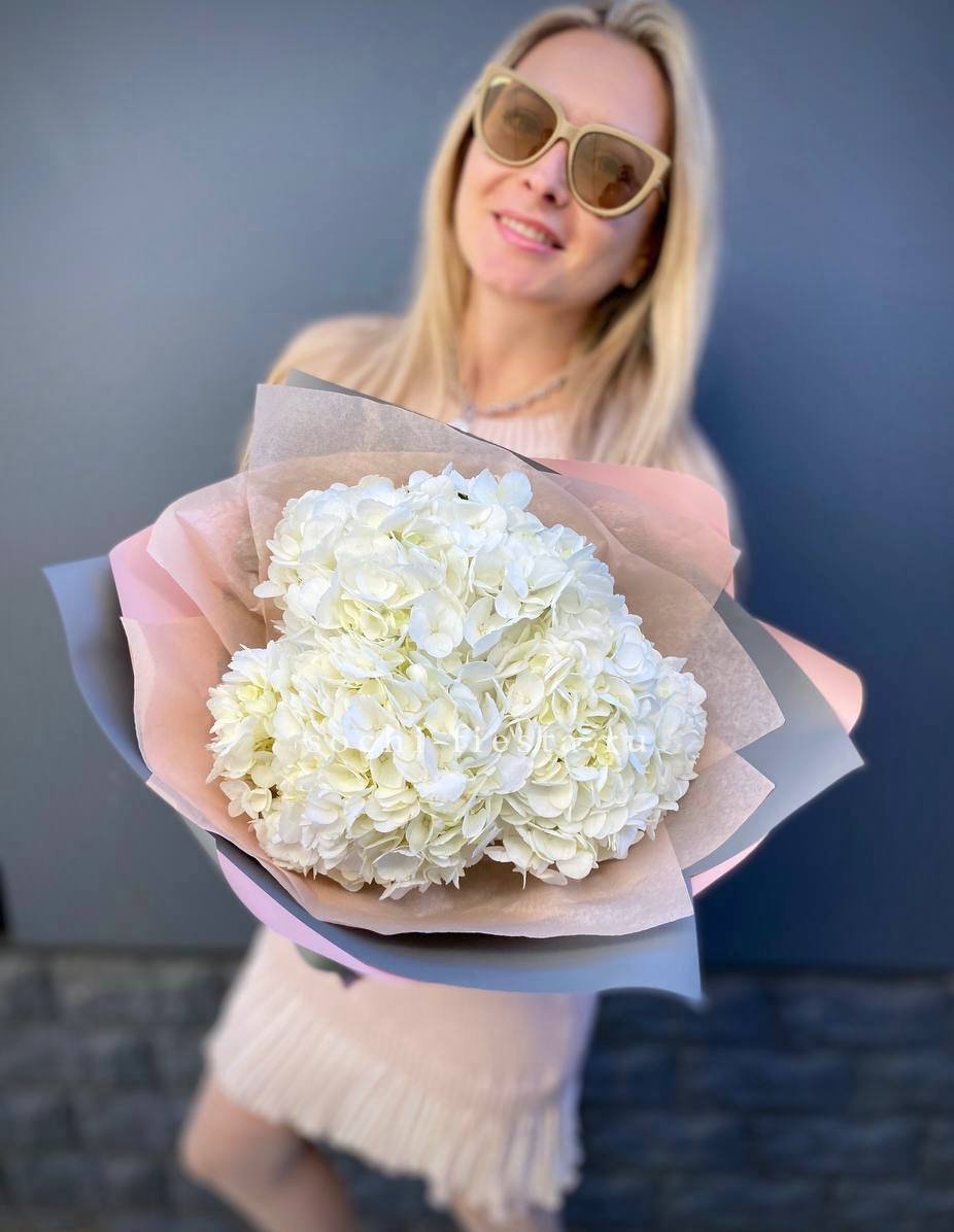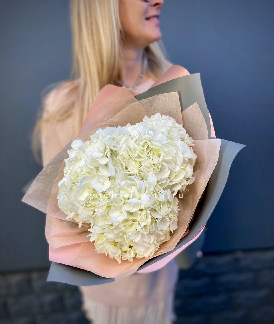 Для заказа товара "Букет из трёх белых гортензий" с доставкой в Шахтах нажмите в корзину
