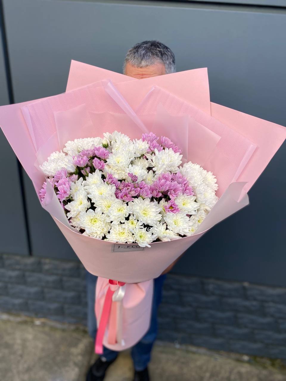 хризантема кустовая - 19 веток, лента, дизайнерская пленка.