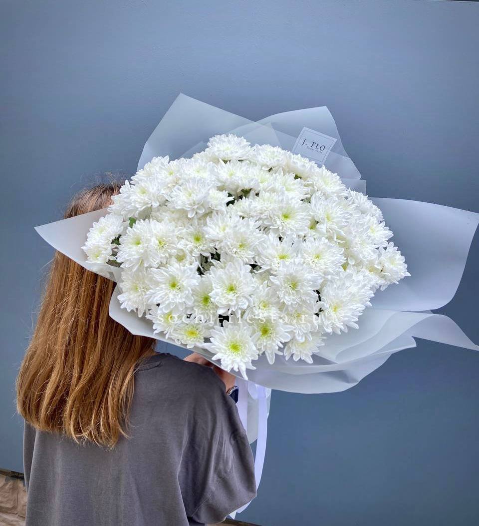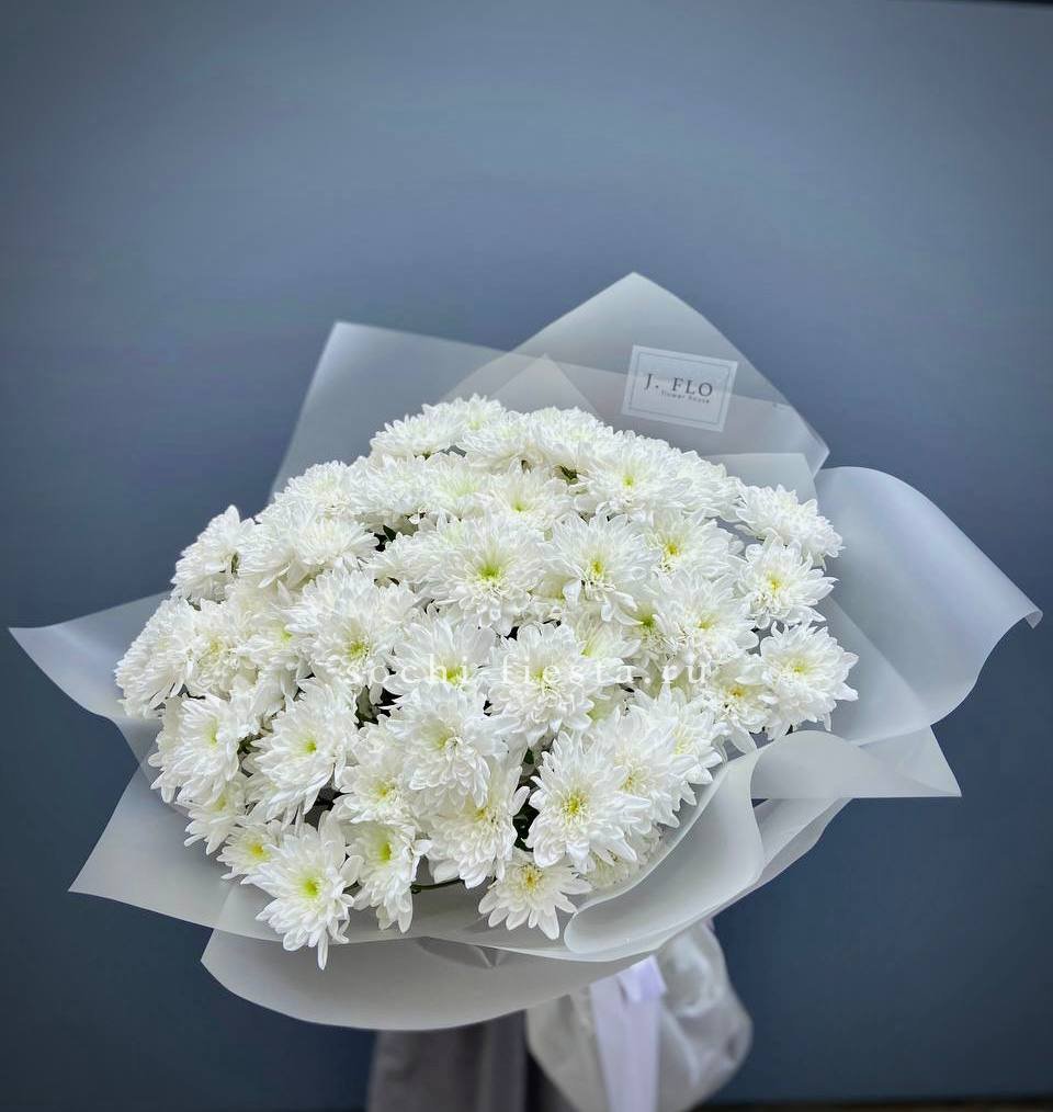 9-11 веток хризантем сантини, лента, дизайнерская упаковка.