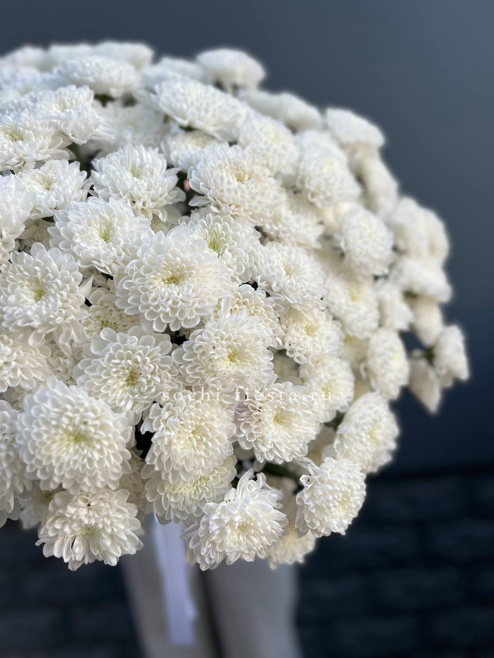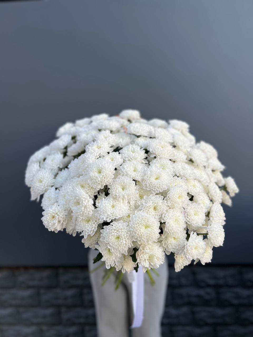 хризантемы - 7 шт, эвкалипт,  лента, дизайнерская упаковка.