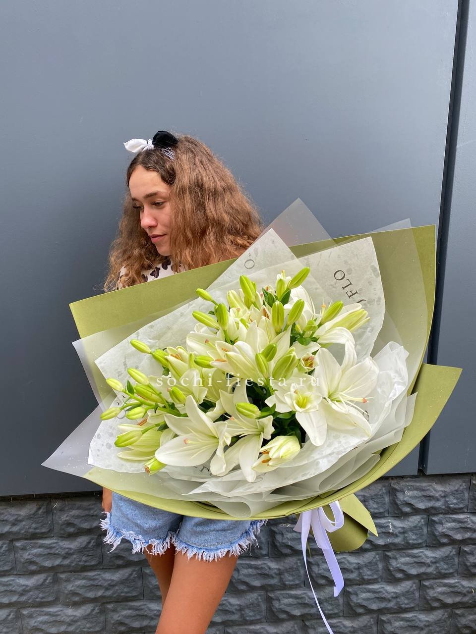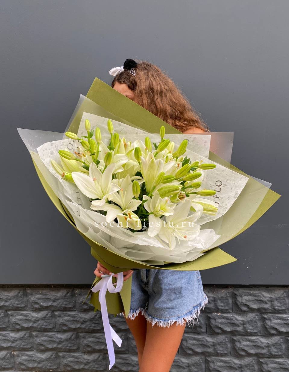 Для заказа товара "Букет лилий "Изумруд"" с доставкой в Шахтах нажмите в корзину