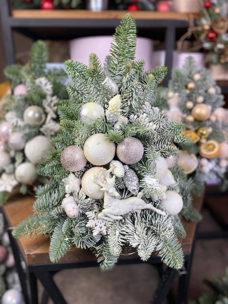 датский нобилис, набор ёлочных игрушек, кашпо, оазис, декор Готовая композиция может иметь незначительные внешние отличия от примера на фотографии.