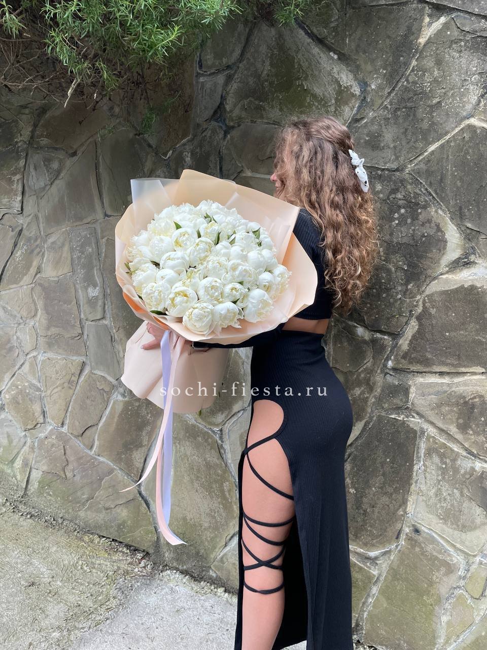 Белоснежные соцветия образуют чистую композицию с мягким ритмом. Тридцать пять головок раскрываются постепенно и сохраняют свежесть долгое время.