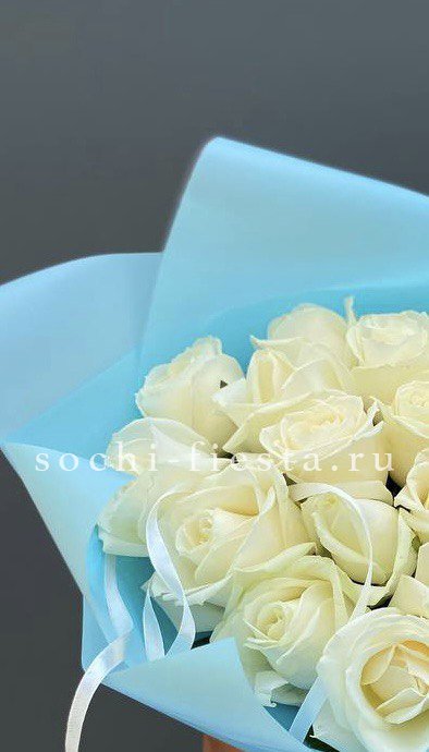 Пятнадцать белоснежных роз собраны в лаконичную форму и упакованы в цилиндр. Монохромная композиция выглядит свежо и современно в любом интерьере.
