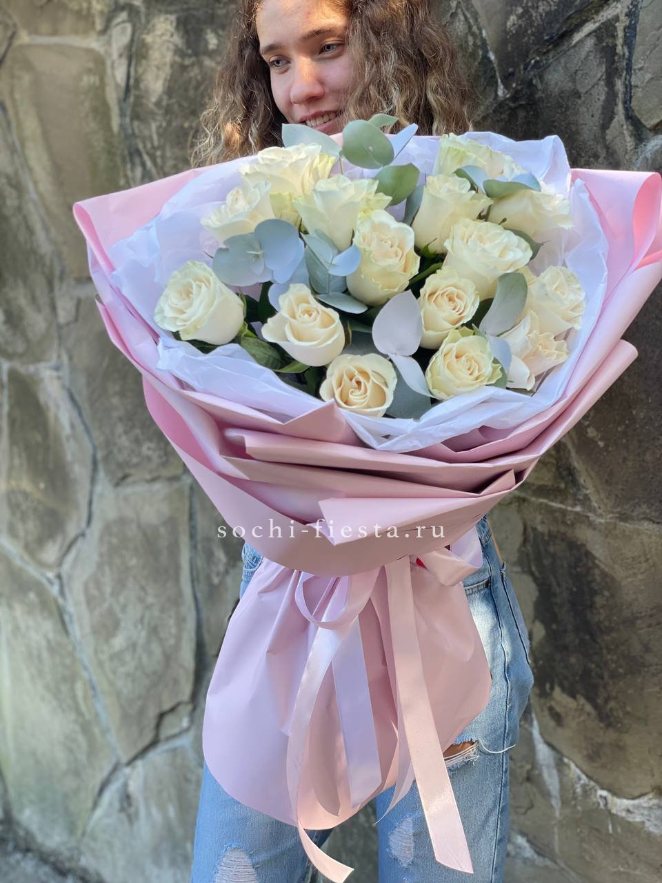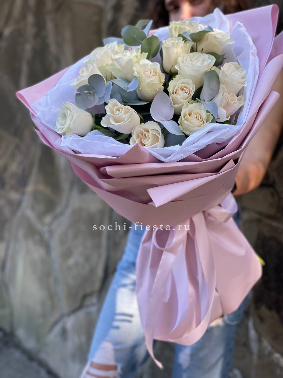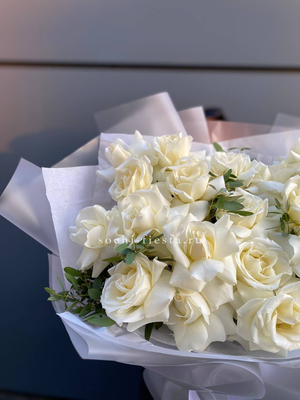 Для заказа товара "Белые розы в авторском оформлении" с доставкой в Шахтах нажмите в корзину