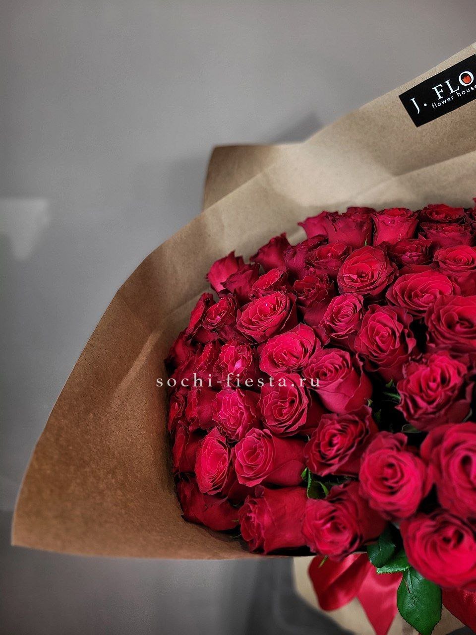 51 красная роза, лента.