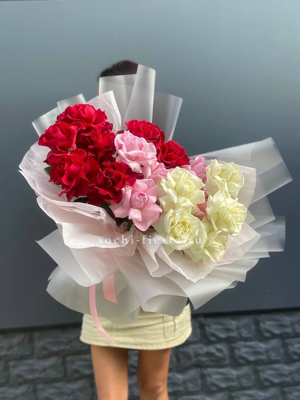 Мы работаем только со свежими цветами — букеты радуют от 7 до 14 дней и дольше при правильном уходе.