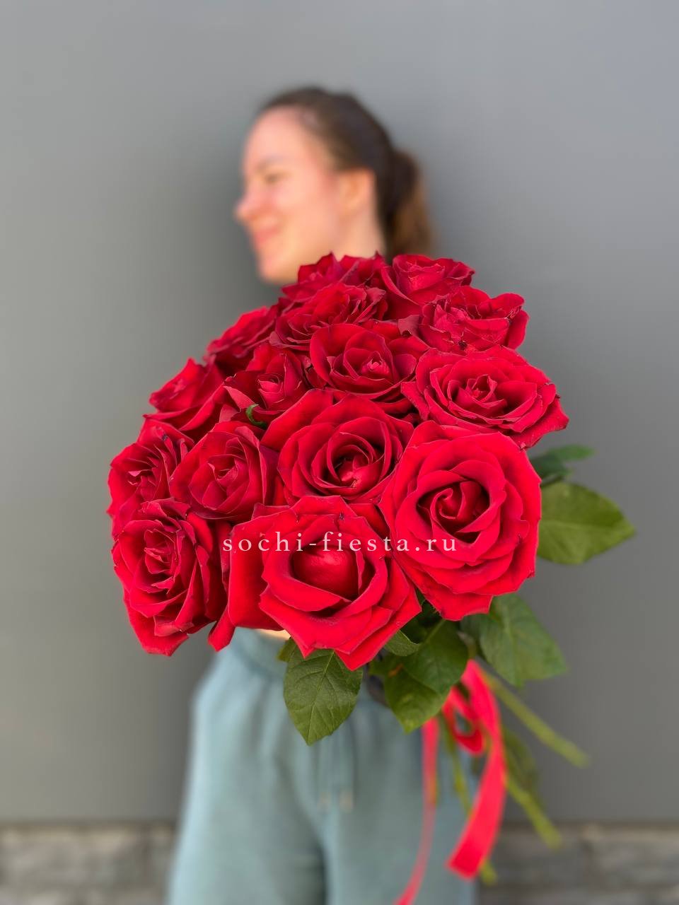 101 красная голландская роза (фридом или эксплорер), лента, упаковка на выбор.