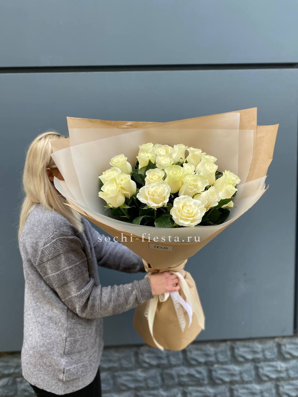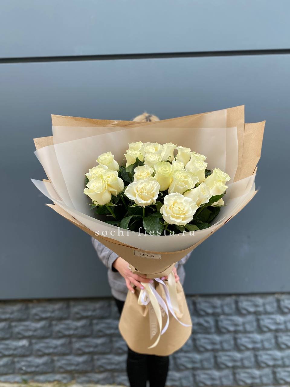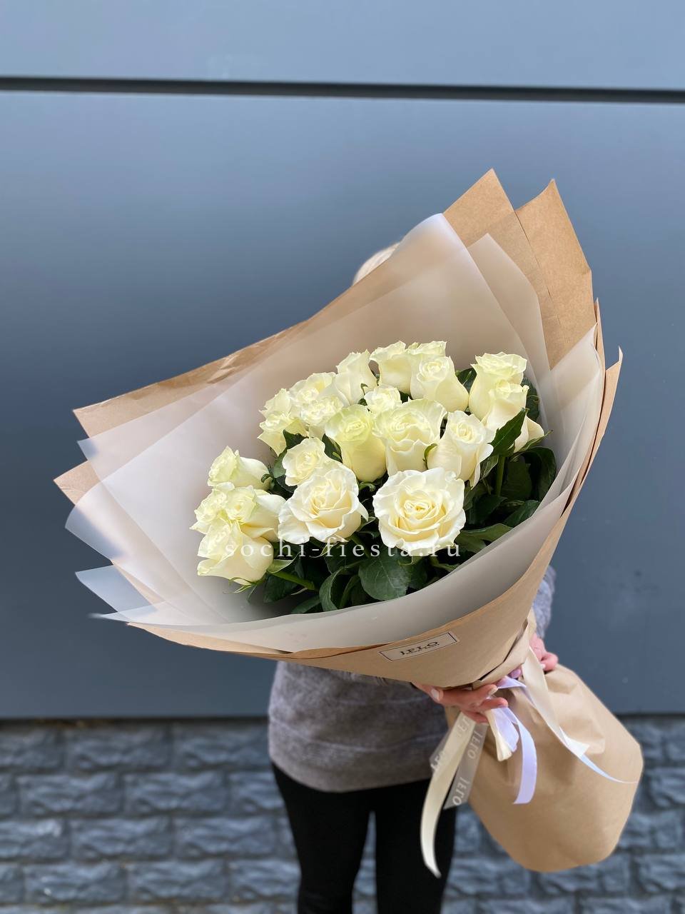 Для заказа товара " Букет высоких белых роз " с доставкой в Шахтах нажмите в корзину