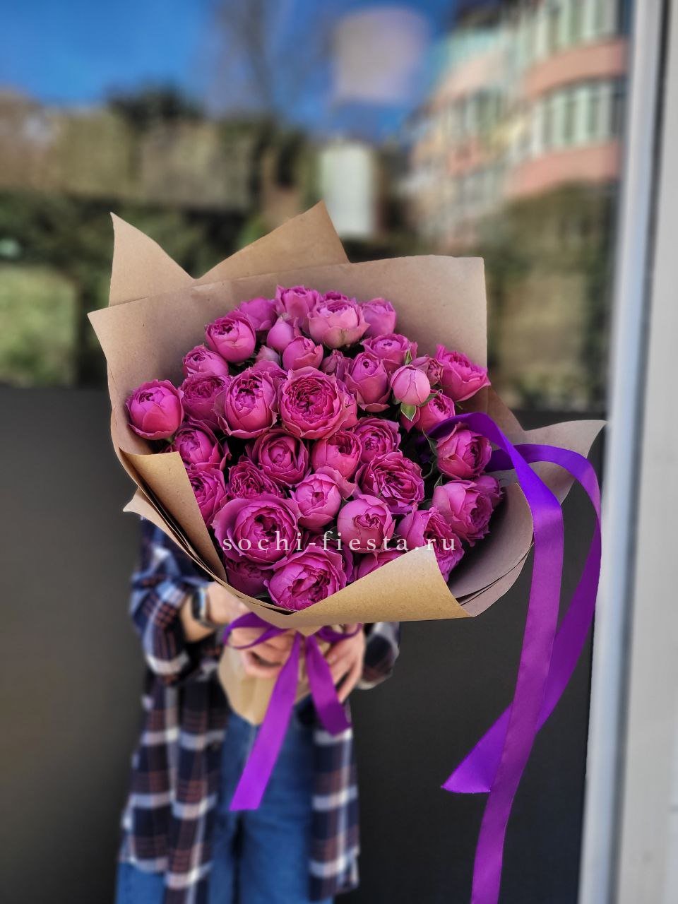 15 кустовых роз спрей, лента, упаковка на выбор.