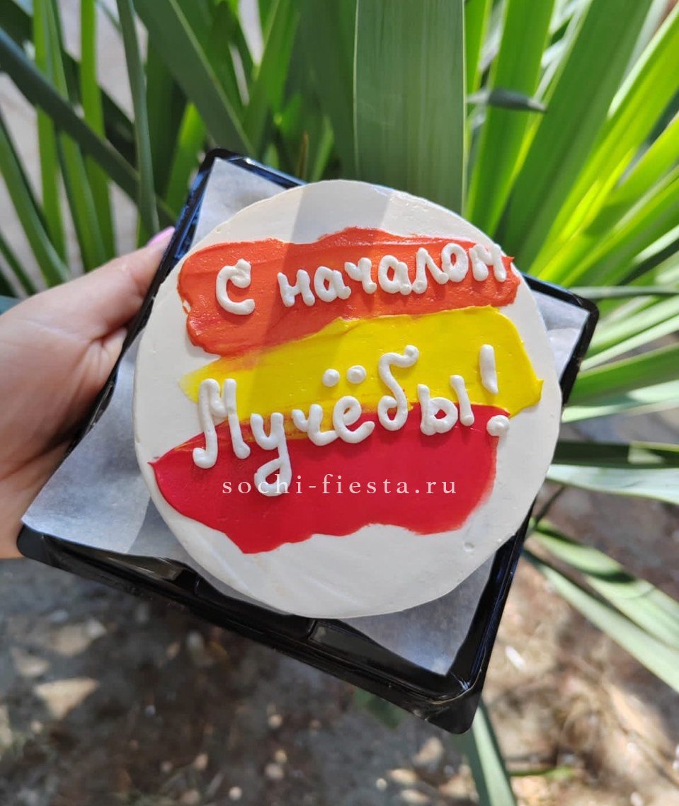 Торт с праздничным оформлением для первоклассника. Две начинки на выбор позволяют подобрать вкус под предпочтения ребенка.