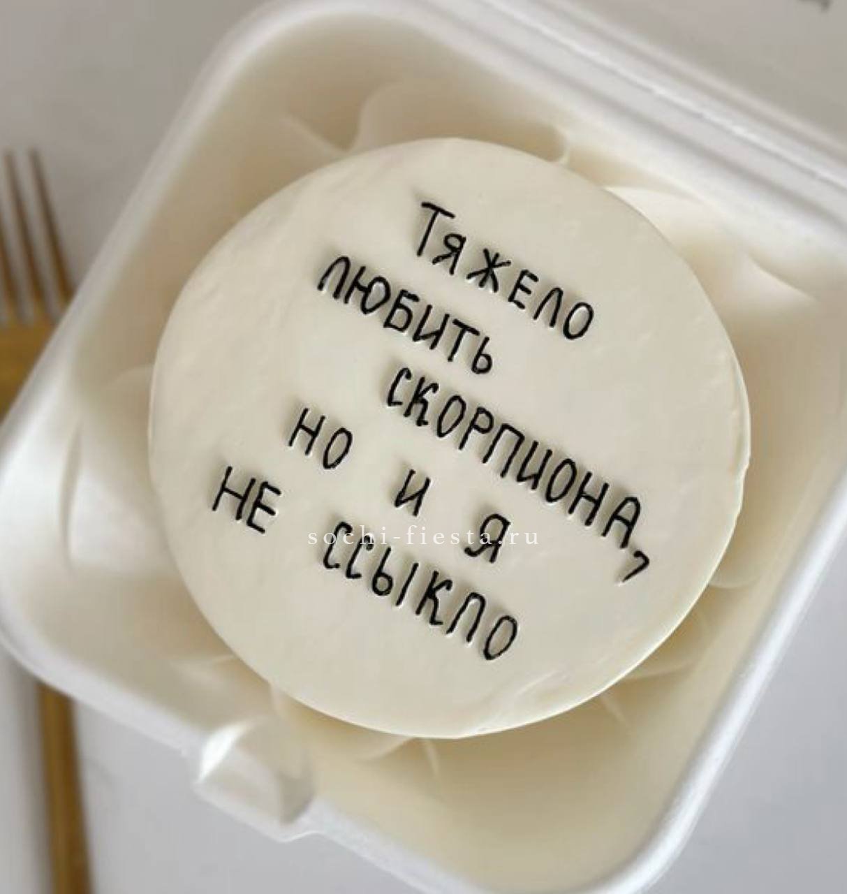 Компактный торт ручной работы с авторским дизайном и выразительной надписью. Крем держит форму, декор продуман до мелочей. Готов сразу радовать того, кто действительно справляется с любыми задачами.